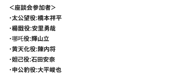 旅を続けるなか、太公望は豪快な人柄で民からの人望も厚い、武成王・黄飛虎(こう ひこ)や仙人である太乙真人(たいいつしんじん)によって生み出された宝貝人間・哪吒(なたく)、太公望を「お師匠さま」と慕う青年・武吉(ぶきち)、太公望と同じく崑崙山の道士で変化の術の使い手と名高い、天才道士・楊戩(ようぜん)らと出会い仲間を増やしていく。