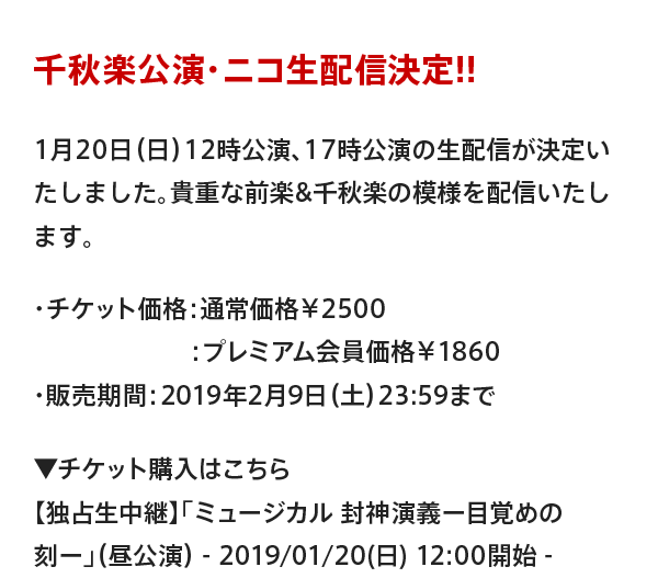 事前販売は該当公演のチケットをお持ちのお客様のみご利用いただけます。ご注意ください。
